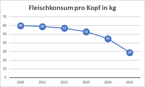Denn: überall dort, wo neue und schnell skalierbare Geschäftsmodelle auf ein sich veränderndes Nutzerverhalten in der Gesellschaft treffen, sind disruptive Veränderungen keineswegs ausgeschlossen. Man stelle sich nur einmal vor, der Rückgang des Fleischkonsums würde sich jährlich verdoppeln, angefangen von -1kg/Kopf. Schon nach sechs Jahren hätte sich der Verbrauch dann halbiert. Derart massiven Einbrüche innerhalb so kurzer Zeit könnte kein Industriezweig der Welt überstehen.