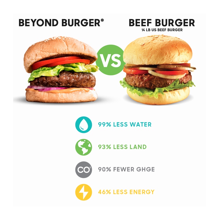 Die Dimension der Werte scheint aber größtenteils stimmig zu sein, denn auch das ebenfalls US-amerikanische Unternehmen Impossible Foods gibt für seinen Burger ähnliche Werte an (96% less Land, 87% less Water, 89% fewer Emissions).